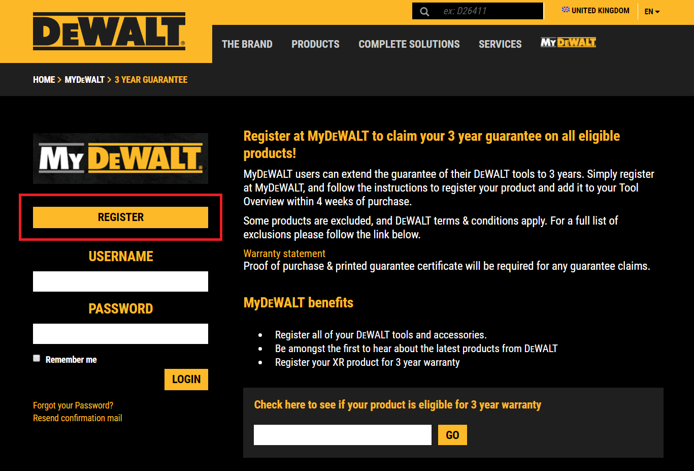 Линк към страница за регистриране: http://mydewalt.dewalt.co.uk/3/