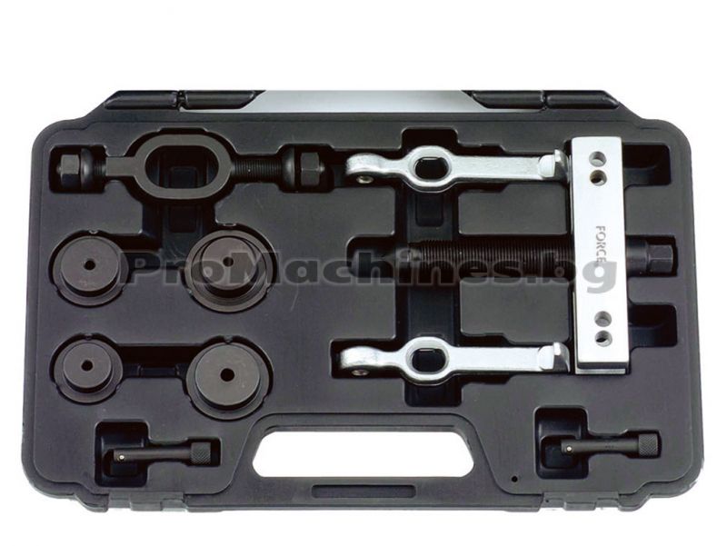 Force представя сепаратор за лагери на диференциал. Моделът притежава двучелюстна скоба, която служи за отстраняване на ролки и лагери. За максимално удобство на потребителя са включени 2 комплекта челюсти с различни размери, напречна греда с отвори за монтаж на челюстите и регулируема кобилица.