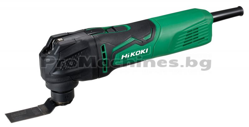 Мултифункционалният електрически инструмент на HiKOKI е предназначен за почистване, рязане, шлайфане и полиране на различни повърхности. В зависимост от използваните приставки, уредът е подходящ за работа с дърво, метал, пластмаса и други. Моделът притежава мощен 350 W мотор, който е в състояние да осигури скорост на трептене в диапазона 6000 – 20000 вибр/мин. Машината поддържа постоянна скорост благодарение на специален контролер. Плавният старт на уреда удължава неговия експлоатационен живот. Инструментът предлага възможност за работа както в стандартен режим, така и в автоматичен, когато нивото на вибрации и шум е значително намалено. Смяната на аксесоарите се извършва изключително бързо и лесно, без помощта на допълнителен инструмент.
