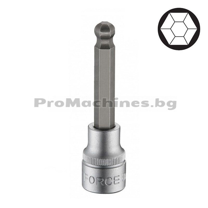 Force представя вложка 1/2 шестограм 6мм заоблен 100мм, изработена от здрава хром-ванадиева стоманена сплав.