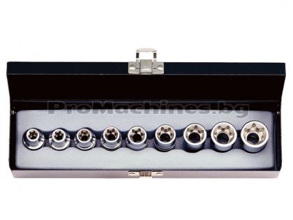 Комплектът Force 4093 съдържа 9 броя вложки 1/2 Е10-Е24, изработени от здрава хром-ванадиева стоманена сплав.
