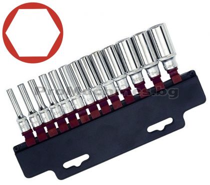 Комплект от 14 броя удължени вложки 1/4 4-14мм, изработени от хром-ванадиева стомана.