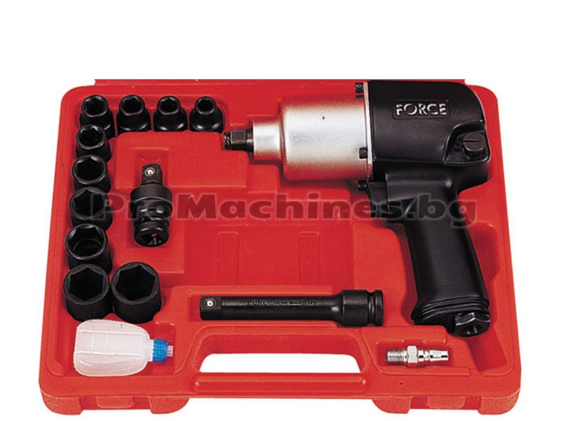 Комплектът Force 4142 съдържа 15 части ударен пневматичен гайковерт с ударни вложки. Машината е със захват 1/2“ и е в състояние да извърши 7000 оборота в минута. Максималният въртящ момент е 542Nm, а въздушният поток е 130 л/мин.