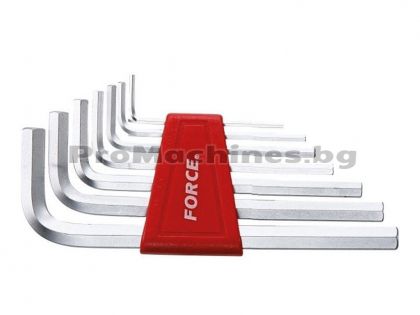 Комплектът Force 5072 съдържа 7 броя шестограми 2.5-10мм, изработени от висококачествена хром-ванадиева стомана.
