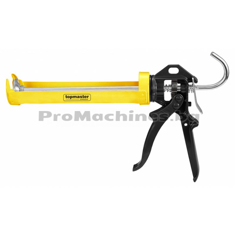 Пистолет за силикон Top Master Pro от полузатворен тип – второ поколение. Моделът притежава здрав метален корпус, както и удобен механизъм за равномерно разнасяне на материала.