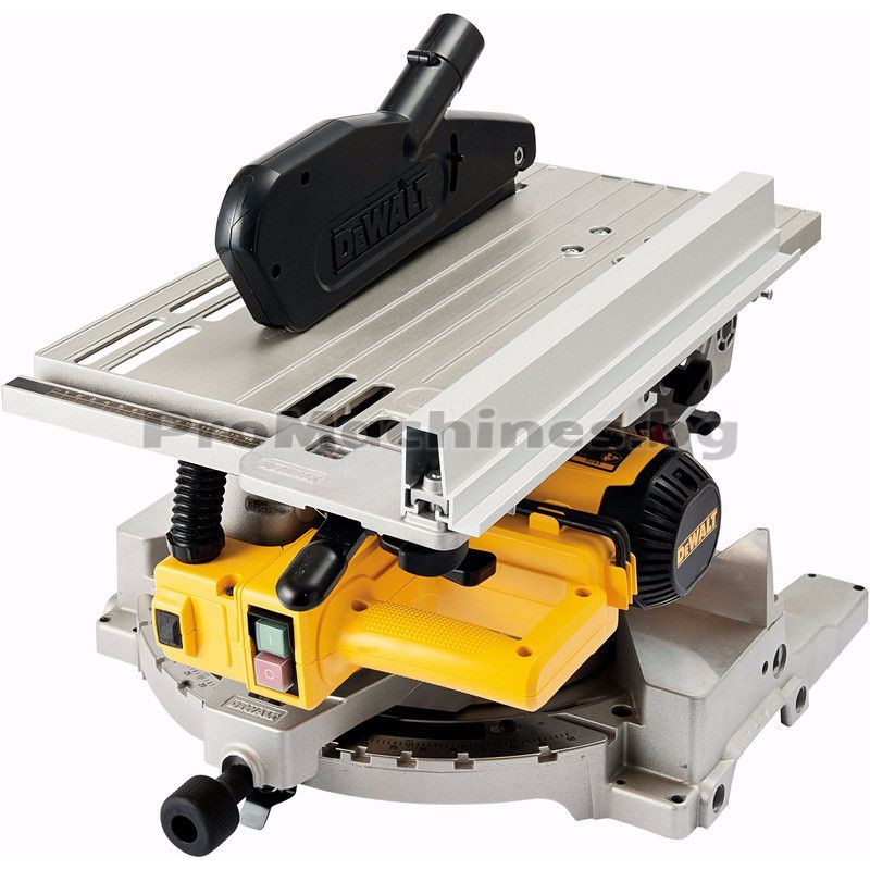 Комбиниран настолен циркуляр 1600W 305мм на марката Dewalt, подходящ за напречно и надлъжно рязане. Моделът притежава компактен и олекотен дизайн с регулируема по височина трионна маса, която е изработена от висококачествен алуминий. Специален плъзгащ механизъм увеличава капацитета на напречно рязане. Машината предлага възможност за регулиране на наклона и ъглите на рязане с помощта на фиксирани ключалки при стандартни ъгли. Циркулярът притежава прахоуловителна система, която свежда до минимум праховите частити в околния въздух. Регулируемото затваряне на детайла позволява прецизна обработкат дори и на малки детайли.