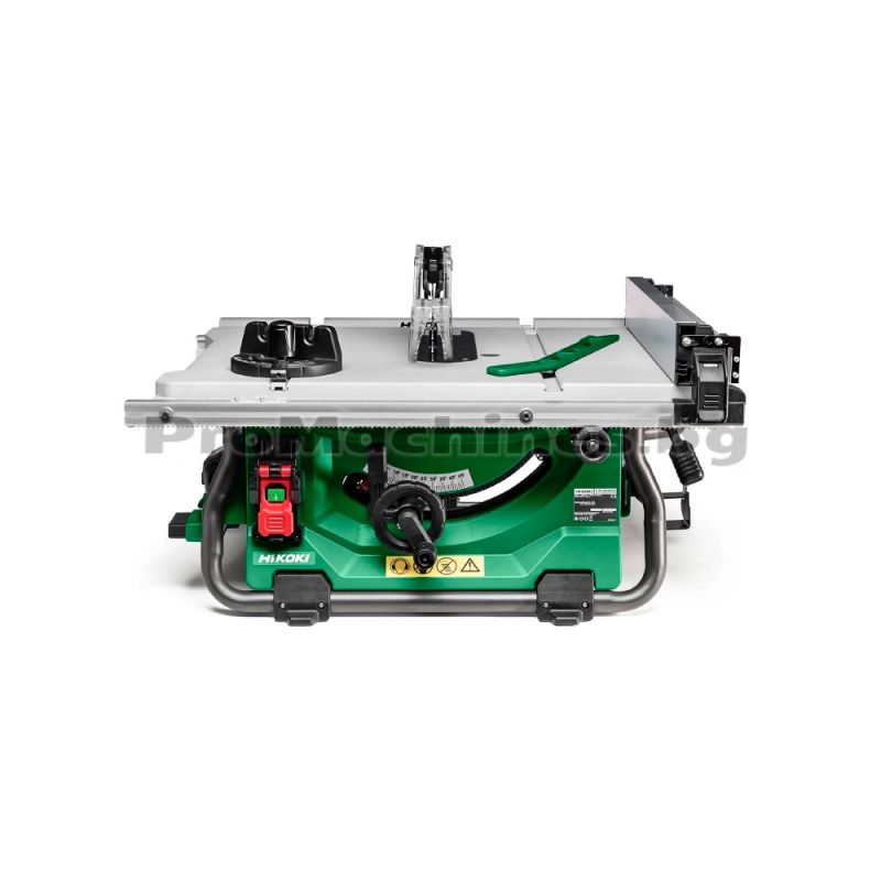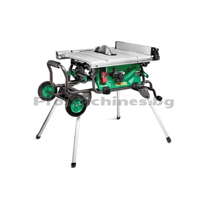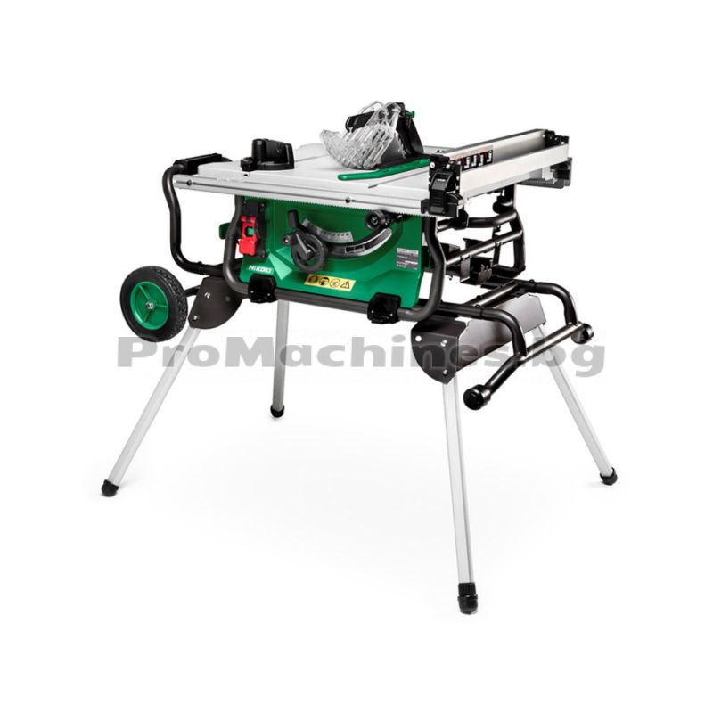 Настолен циркуляр HiKoki, модел C10RJ-WAZ с 254 мм. диск за рязане на дървени греди и плоскости. Електромотора е с мощност 1500W, а в комплекта се включва и стойка с колела за пренасяне. Диска в комплекта е ф254х30х2.8 мм. 40Z за дърво. С други съвместими по размер дискове може да реже пластмаса и алуминий.