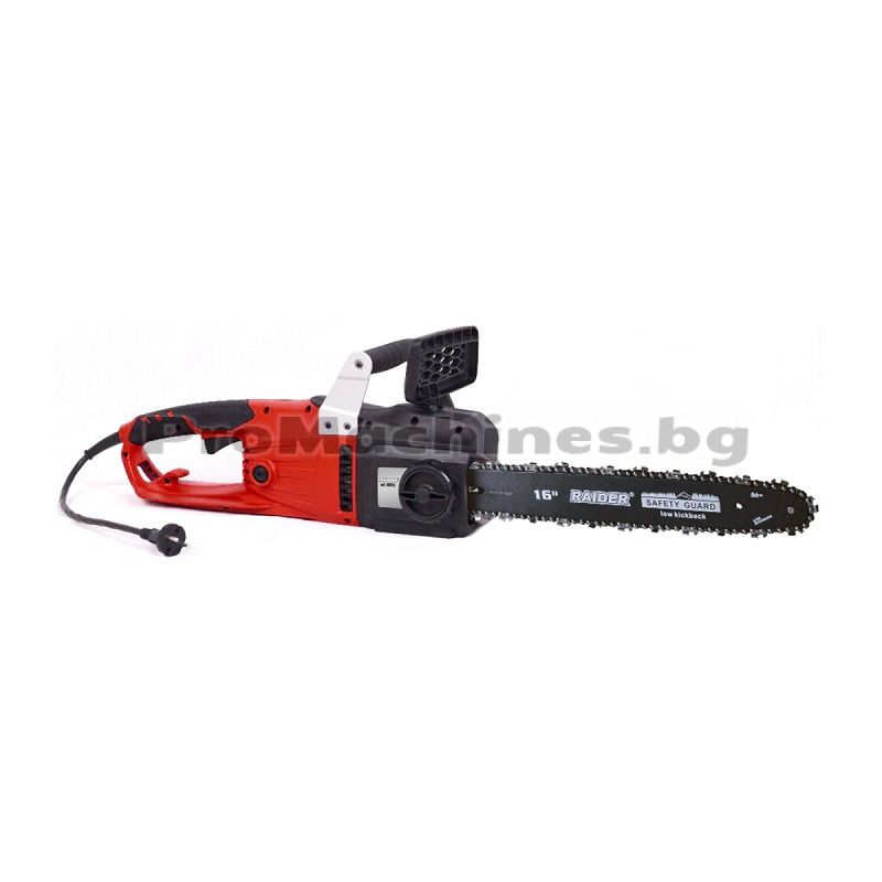 Raider RDP-ECS27 е електрическа резачка за дърва, която намира приложение при работа в двора и градината. Моделът е подходящ за рязане на дървета и клони, а също така е безценен помощник и в строителството на дървени съоръжения и постройки в градината, при направата на покривни конструкции и други подобни дейности, изискващи напречно рязане. Машината разполага с надлъжно разположен електрически мотор с мощност 2400W, както и със система Quick fit за опъване на веригата без употребата на допълнителен инструмент. Електрическият верижен трион има спирачка против „откат“ (обратен удар), която се задейства в рамките на 0.12 секунди. Сред останалите предимства на Raider RDP-ECS27 са прозрачен резервоар, който позволява лесното проследяване на маслото, система за бърза смяна на четките на електромотора, както и ергономична ръкохватка, която има меко противоплъзгащо покритие.