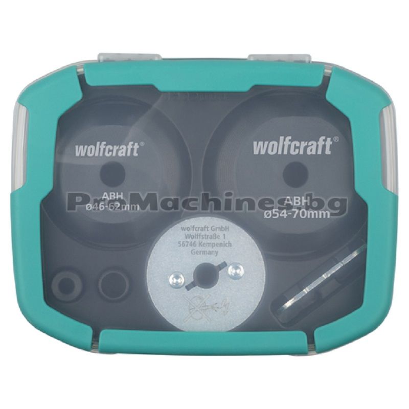Комплектът на Wolfcraft се състои от 3 конични водача за боркорони и 3 сменяеми втулки за бормашина, които се явяват безопасно решение за чисто и центрирано разширяване на съществуващи отвори.