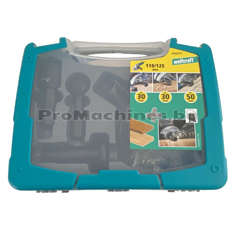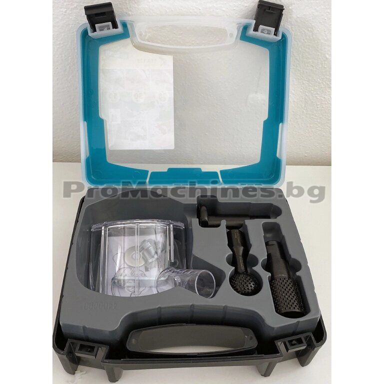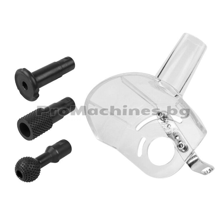 - Прахоуловител, фрезер (ф 50 мм), цилиндричен (ф 30 мм) и сферичен (ф 30 мм) шлайфгрифер за работа с ъглошлайф
