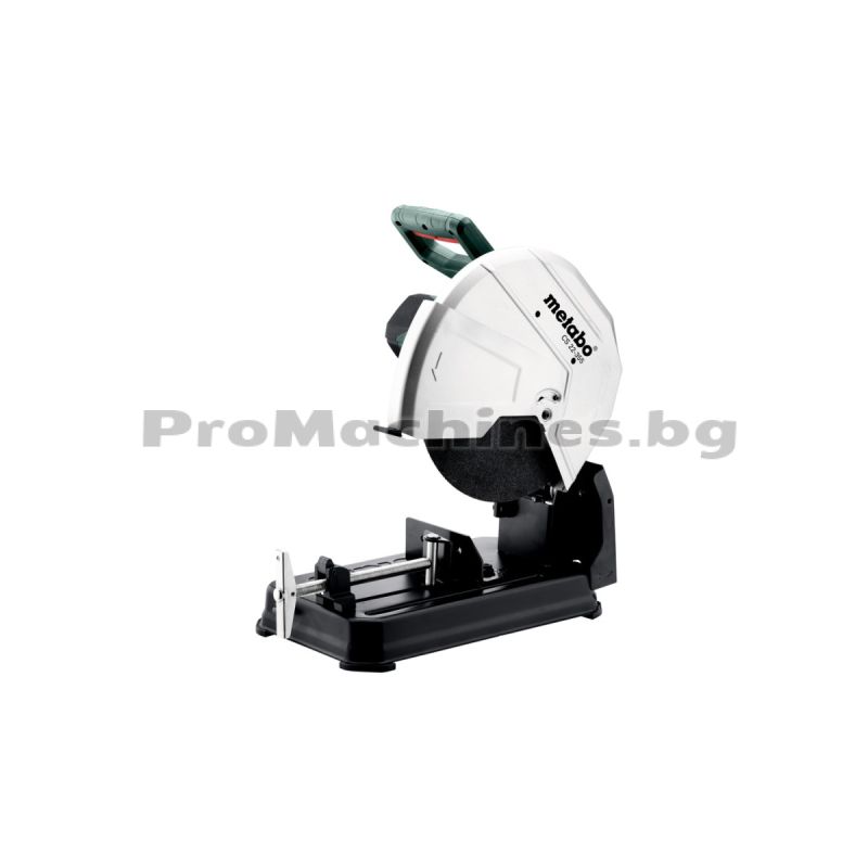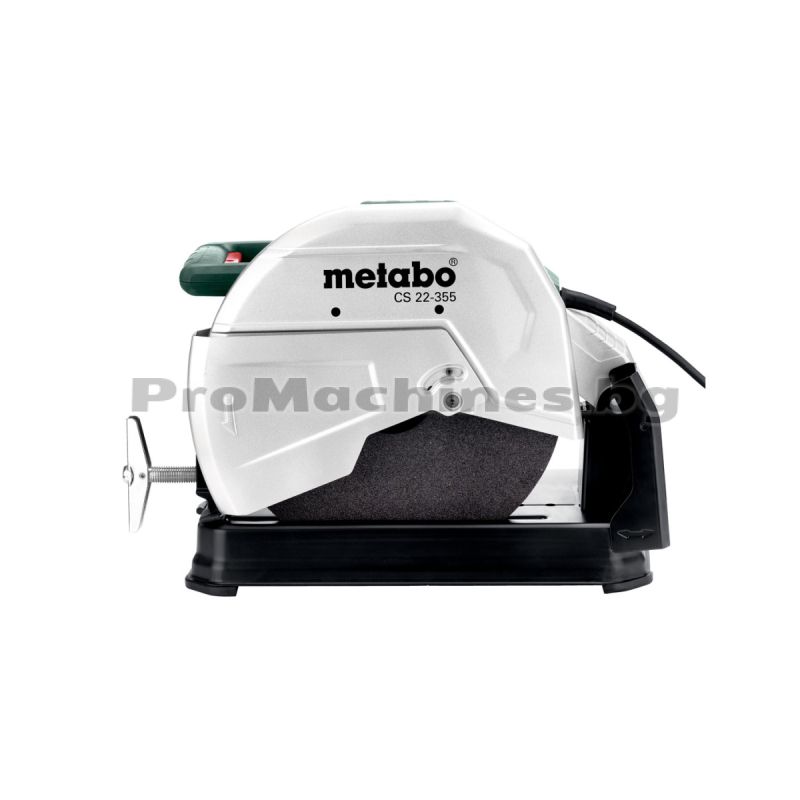 Стационарният ъглошлайф 355 мм. 2300W METABO CS 22-355 е оборудван с бързозатягащо менгеме, което позволява безстепенно завъртане в обхват от -15° до 45°. Има защитен превключвател, предпазващ от неволно стартиране. Разполага с регулируем дълбочинен ограничител, който дава възможност за прецизно рязане. Отличава се с голяма ръкохватка, разположена напречно на оста на рязане, което осигурява оптимално пренасяне на силата при работа. Към уреда се предлага и диск за рязане, който гарантира качествени и прецизни резултати. Голямата ръкохватка, разположена напречно на оста на рязане, осигурява удобство и контрол при работа. Доставя се в кашон заедно с ключ шестостен, опорен фланец, затягаща гайка и диск за рязане 355 мм.