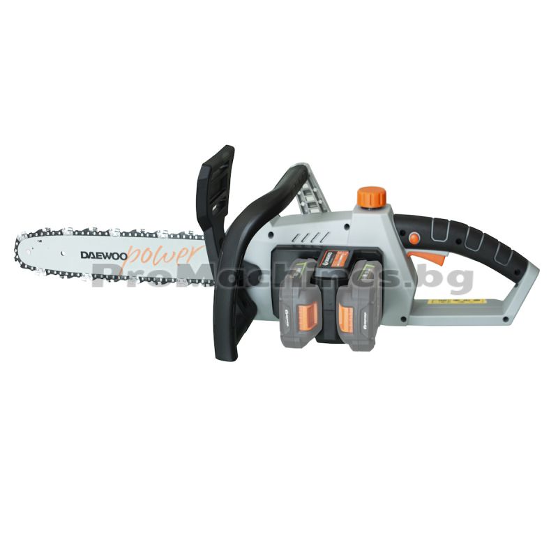 Резачката за дърва на DAEWOO с акумулаторно захранване 40V (20V+20V) е високо ефективна машина за рязане на дървени материали. Този модел е предназначен за употреба с 2 батерии от серията UNI-BAT. Резачката разполага с впечатляващи обороти на празен ход, достигащи 4500 об./мин., и скорост на движение на веригата до 8.5 м./сек. Дължината на шината е 14" (35.5 см.), а максималната дълбочина на рязане достига 300 мм. Веригата е снабдена с 52 задвижващи звена и стъпка 3/8". Капацитетът на резервоара за масло е 150 мл. Доставя се в кашон БЕЗ батерия и зарядно устройство.