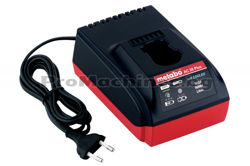 Универсалното бързо зарядно устройство Metabo AC 30 Plus е конструирано да обхване широк диапазон от предлаганите на пазара батерии с марка Metabo. Съвместимо е с всички модерни Li-Ion батерии от 12,0 до 18,0V. Същевременно можете да използвате с вашите по-стари батерии, произведени по Ni-Cd и Ni-MH технологиите с номинално напрежение от 4,8 до 18,0V, посредством адаптер 627075000 (продава се отделно).