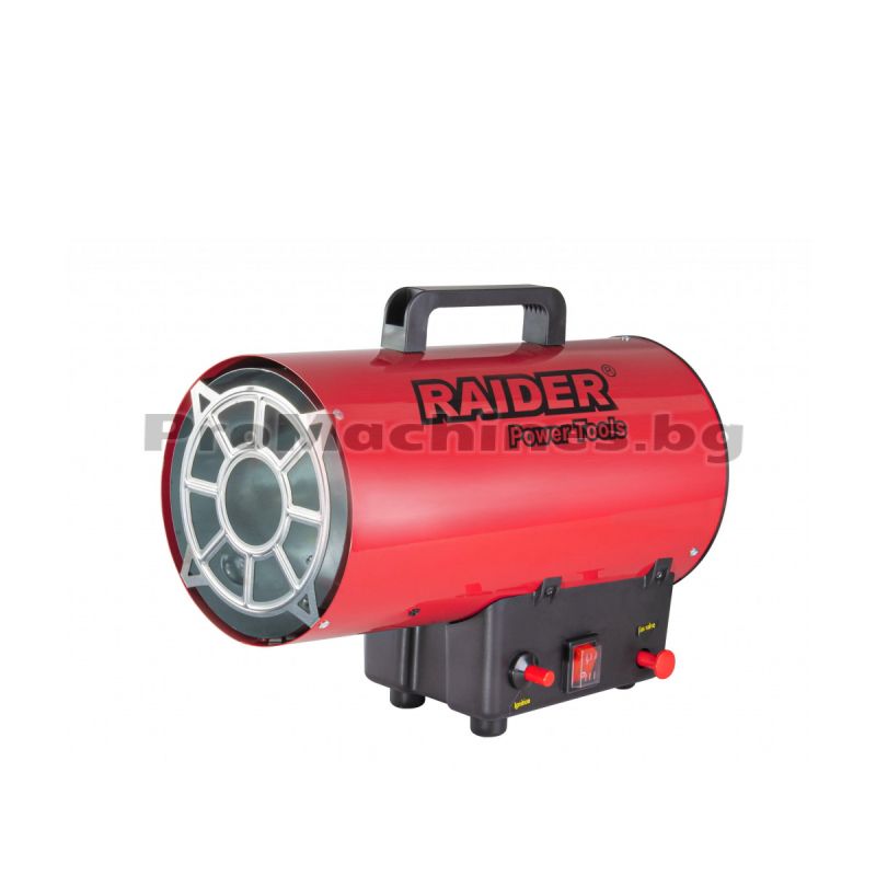 Калорифер на газ 15kW – Raider RD-GH15. Подходящ за затопляне на индустриални, складови и други помещения. Бързо затопляне на въздуха, благодарение на ефективната газова горелка и вентилатор. Снабден е с удобна дръжка за пренасяне.