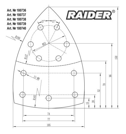 Шкурка Velcro 150x150x100mm 11 отвора 10бр P80 за мултишлайф