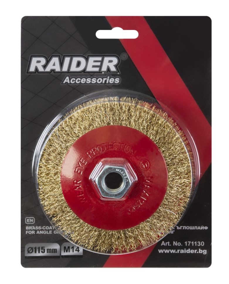 Четка телена за ъглошлайф конусна месинг Ø115mm M14