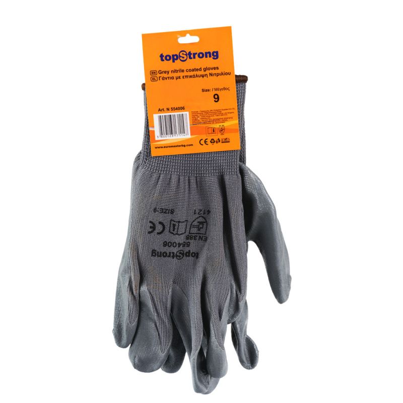 Ръкавици сивo полиестерно трико/сив нитрил-хенгер TS р-р 9