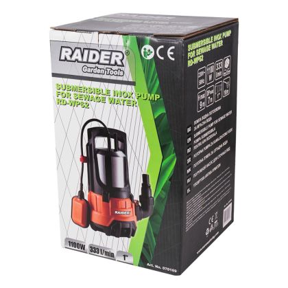 Помпа водна потопяема 1100W 1" 333L/min 9m INOX RD-WP62