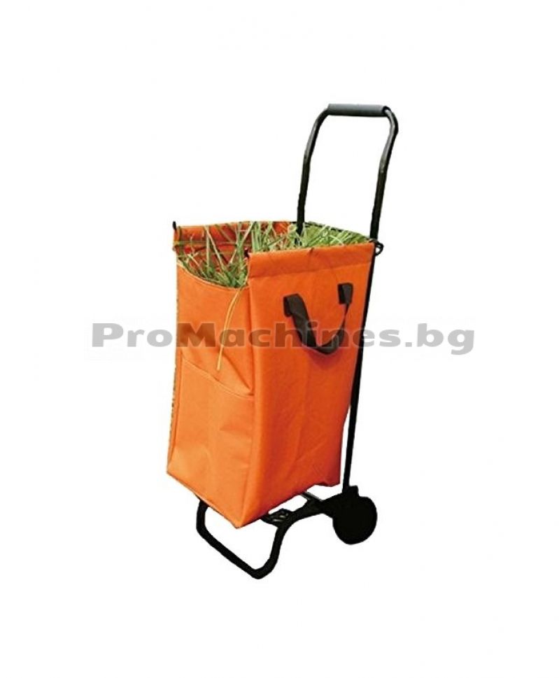 Градински кош с количка. Размери 36 х 40 х 100 см. Лек и удобен за пренасяне и транспортиране. Подходящ за използване в градината за събиране на листа и трева.