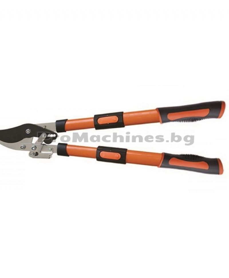 Ножица за клони телескопични дръжки и усилващ механизъм. Закалено острие. Метални дръжки. Размер 650 - 910 мм. Марка Top Garden Premium.