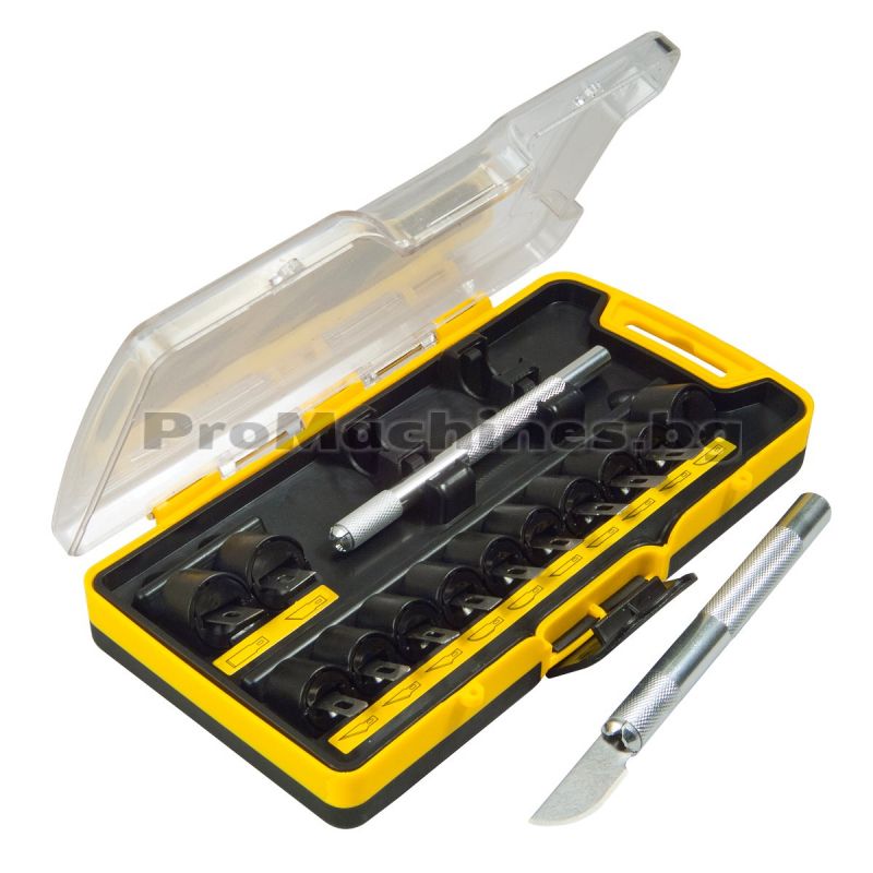 Комплект ножчета на Stanley разполага с 12 различни вида остриета за приложение в широк спектър от материали, включително за рязане с висока точност, зачистване, моделиране, шаблонни шарки и ецване.