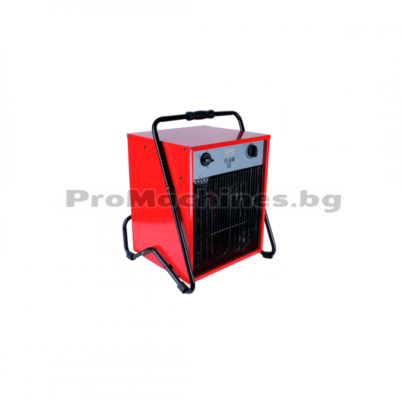 Електрически калорифер с мощност от 15 Kw и 120m3 отопляема площ. Снабден с 3-степенен регулатор на вентилатора, и регулатор на топлинния поток. След изключване на електро уреда, вентилатора продължава да работи, докато не охлади реотаните.