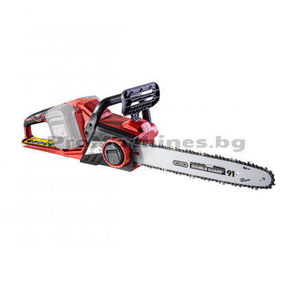 Иновативна ергономична капачка за маслото на веригата, придаваща бързо наливане на масло с лекота. Машината е окомплектована с висококачествени шина и верига OREGON. Резачката работи с 2 батерии.