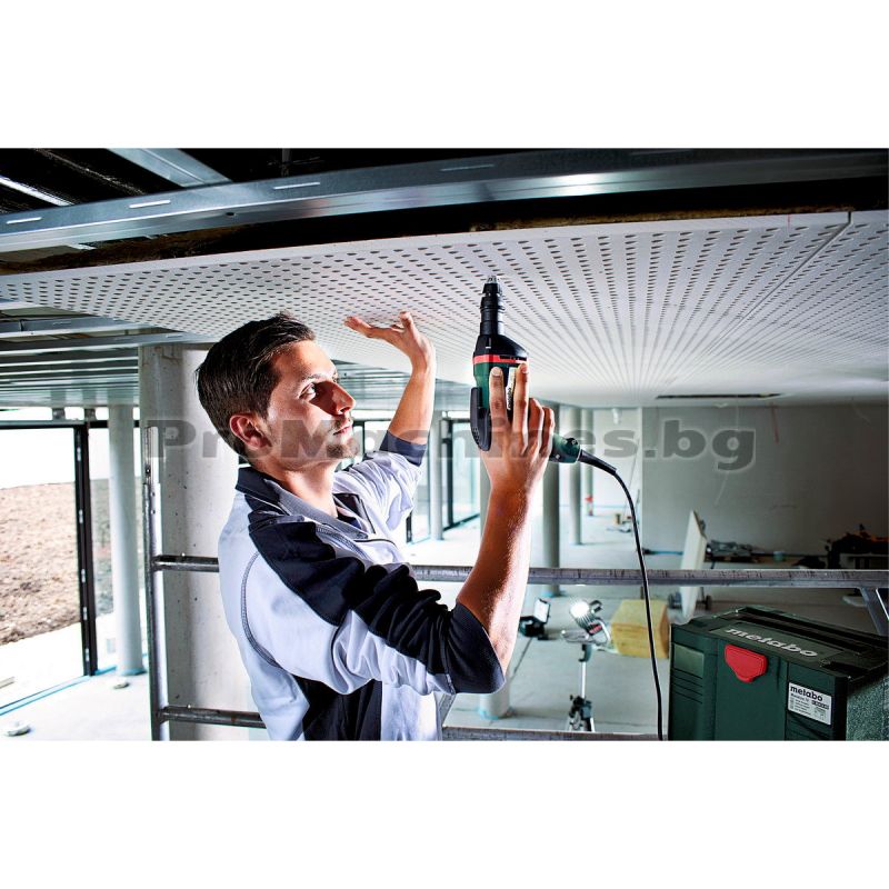 Електрически винтоверт Metabo SE 4000 600 W - с подсилен мотор до 600 W и висока скорост . Държач за бит с бърза смяна. Електрониката "Variospid" осигурява прецизен контрол на скоростта на въртене. Заключването на бутона на превключвателя опростява дългата работа на оператора. Регулирането на дълбочината на усукване позволява прецизно фиксиране на винта за сухото строителство.