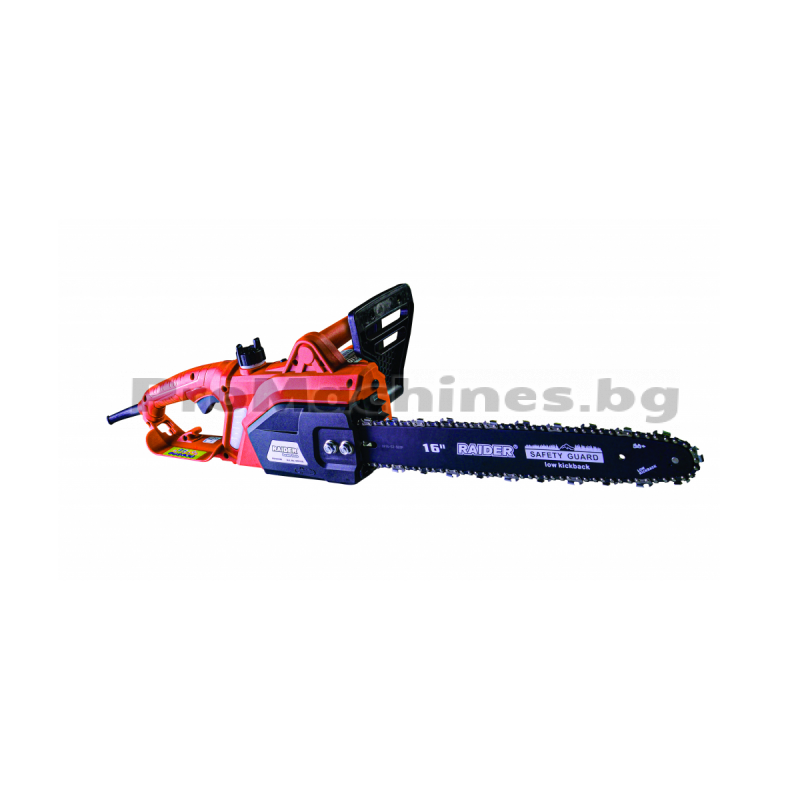 Резачката за дърва на Raider има олекотен и компактен дизайн. Тя е оборудвана с 2000 W мотор и притежава скорост на веригата 12.5 м/с. Времето за реагиране на спирачката е 0.12 секунди, а дължината на шината е 355 мм. Режещата верига има функция за автоматично смазване с маслена помпа.