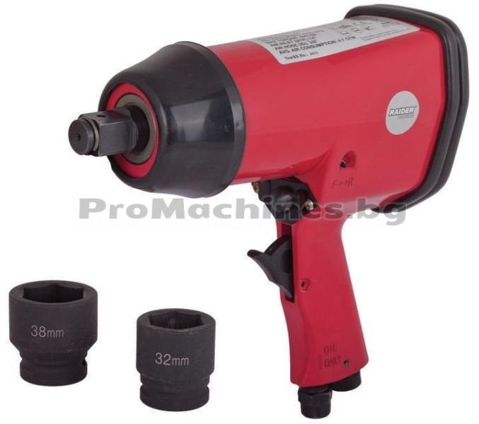 Пневматичният ударен гайковерт на Raider се използва за сглобяване на лека и тежка строителна механизация. Моделът има 0.62 Mpa работно налягане и е в състояние да извърши до 4800 оборота в минута. Въртящият момент е 610 Nm, а консумацията на въздух е 134 л/мин. Комплектът съдържа 8 броя аксесоари.