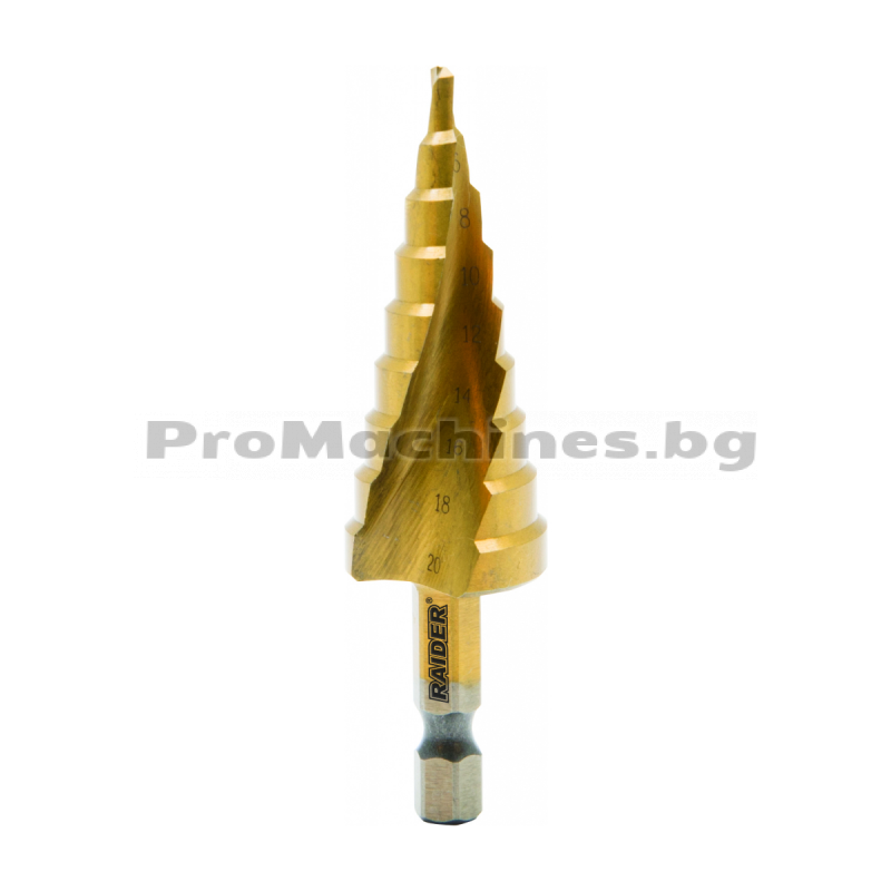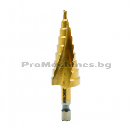 Свредло стъпаловидно шестостен HSS+TIN Ф4-20мм - Raider