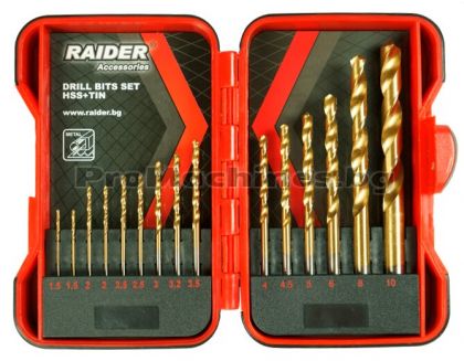 Свредла за метал 15бр Ф1.5-10мм HSS+TIN - Raider