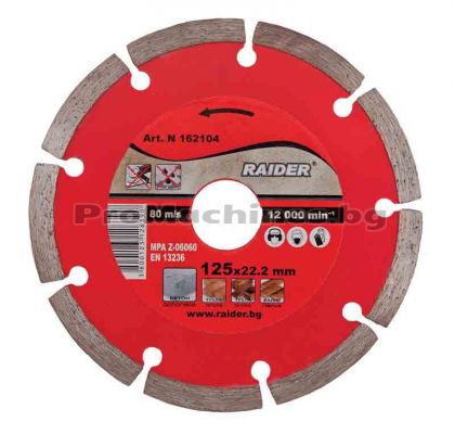 Диамантеният диск на Raider е подходящ за сухо рязане, за бетон, къмък, тухла, керамика и фаянс.