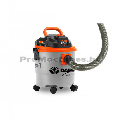 Прахосмукачка за сухо и мокро почистване, марка Daewoo, модел DAVC1250. С мощност 1250W и вакуум от 15 kPa можете успешно да почистите дребни и по - едри отпадъци, както и разлети течности. Снабдена е с колела за лесно придвижване.