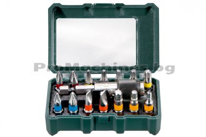 Metabo представя комплект от 15 части накарайници – битове. Моделът е изработен от хром-ванадиева стомана, качество S2. Битовете имат цветна кодировка за по-бързото и лесно намиране на необходимия накрайник. Комплектът притежава магнитен бързосменен държач и се предлага в удобна кутия за съхранение.