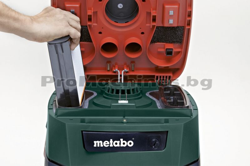 Metabo представя прахосмукачка за сухо и мокро почистване със сертификат за промишлена употреба. Моделът е подходящ за почистване на прах от бетон или камък. Уредът има интегирана система AutoClean Plus, която спестява както разходи, така и време. Благодарение на автоматичното почистване на филтъра с MPulse, работата не се прекъсва. При спадане на мощността на засмукване, веднага се задейства почистването на филтрите. Уредът е със защита на потребителя - сертификат съгласно EU-нормите за прахове, клас L. Прахосмукачката се изключва автоматично при мокро изсмукване, когато е достигнато максималното ниво на течността. Силата на засмукване може да бъде регулирана в зависимост от приложението. Уредът има автоматика за пълно изпразване на смукателния шлаух. Антистатичното базово изпълнение предпазва от образуването на статично електричество при използване на подходящи аксесоари. Машината има практични гнезда за съхранение на принадлежностите. Прахосмукачката е изключително стабилна, тъй като се задвижва с предни и задни колела, като предните са със спирачки. Моделът има възможност за навиване на кабела.
