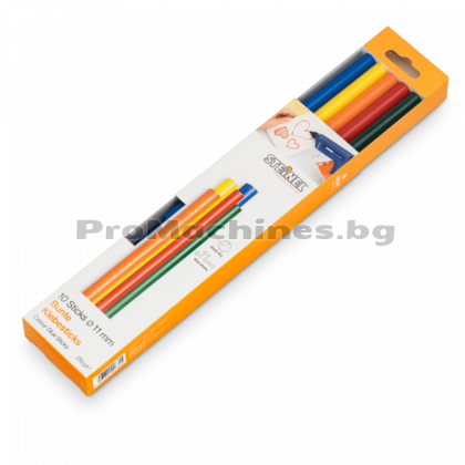 Универсални пръчки силикон в ярка цветова гама за топло лепене с диаметър 11 мм и дължина 250 мм. Универсалното лепило е идеално за изрисуване на релефни елементи и моделизми. В блистера има по 2 - жълти, оранжеви, червени, сини и черни патрона.