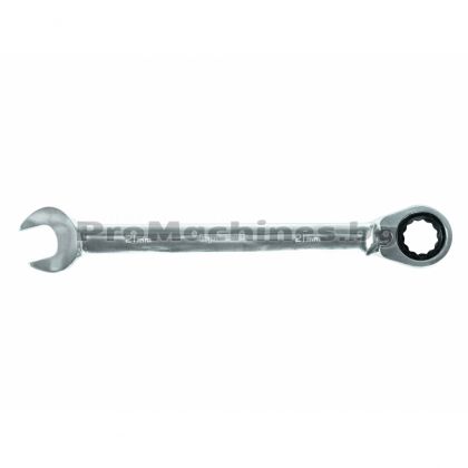 Top Master Pro представя звездогаечен ключ с тресчотка 21 мм., изработен от висококачествена хром-ванадиева стомана. Моделът е изцяло полиран и е с хром-никелово антикорозионно покритие. Ключът притежава прецизен тресчотен механизъм със 72 зъба, който позволява реверсивен ъгъл на рамото от 5°. Инструментът има възможност за смяна на посоката, а главата на ключа е с наклон 15°, което го прави подходящ за работа на труднодостъпни места.