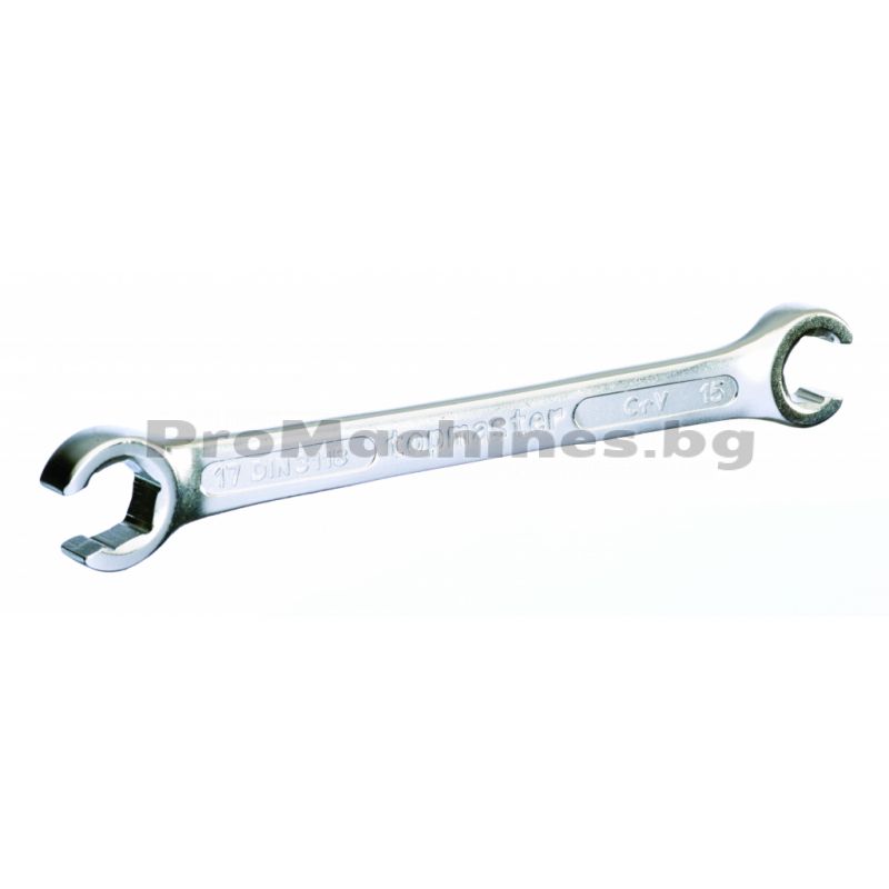Top Master Pro представя срязан ключ 13х14 мм., изработен от горещо щампована висококачествена хром-ванадиева стомана. Моделът притежава трайно матирано хромово антикорозионно покритие и е съобразен по стандарт DIN 3118.