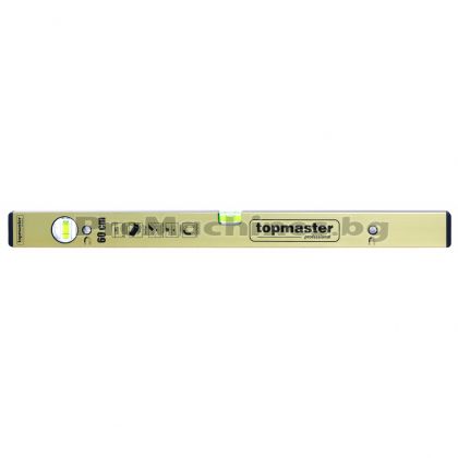 Top Master Pro представя алуминиев нивелир с магнит 40 см. Либелите са иработени от акрилно стъкло, а монолитната алуминиева рамка е устойчива на изкливяване и усукване. Уредът притежава вградени плоски естествени магнити, които задържат нивелира към стоманените детайли. Допустимото отклонение е до 0.5 мм/м.