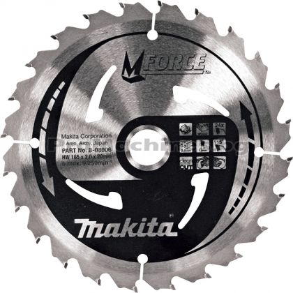 Дискът за циркуляр на Makita е подходящ за рязане на дървесина. Формата на зъбите му наподобява буквата М и така се удвоява броя режещите ръбове на диска. Серията Mforce се отличава с бърз и прецизен разрез, както и с висока степен на издръжливост.