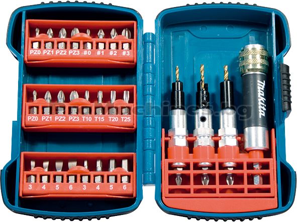 Комплектът на Makita съдържа 28 бита с магнитен държач. Моделът е подходящ за отвертка и винтоверт.