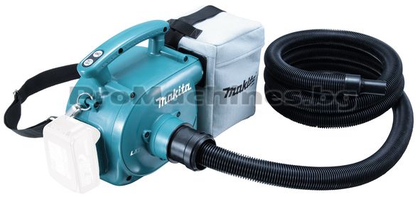 Акумулаторната прахосмукачка на Makita представлява 2 инструмента в 1. С помощта на специален накрайник тя се превръща във въздуходувка. Моделът има компактен и олекотен дизайн, който го прави изключително маневрен по време на работа. Машината има възможност за регулиране на въздешния поток във висок/нисък режим. Уредът притежава голяма торба за прах с капацитет 3 литра. Коланът за рамо осигурява по-голямо удобство при работа и прахосмукачката.