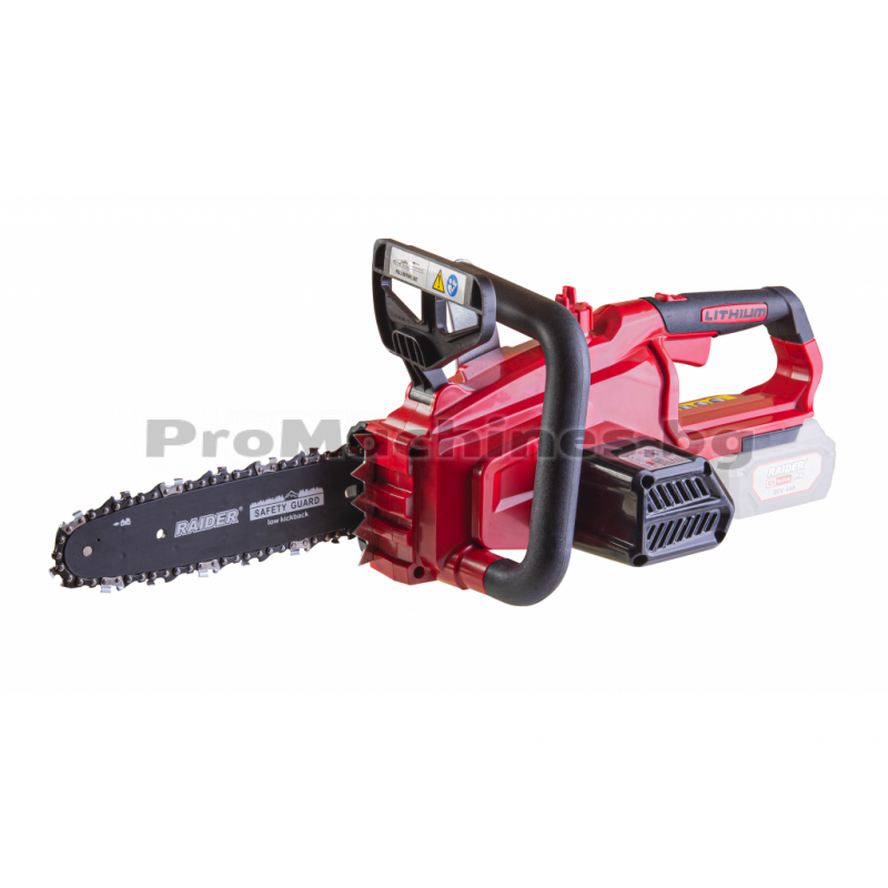 Акумулаторната резачка за дърва на Raider е подходяща за кастрене или поваляне на малки дървета. Моделът има олекотен дизайн, намалени нива на шум и пълна липса на вредни емисии.