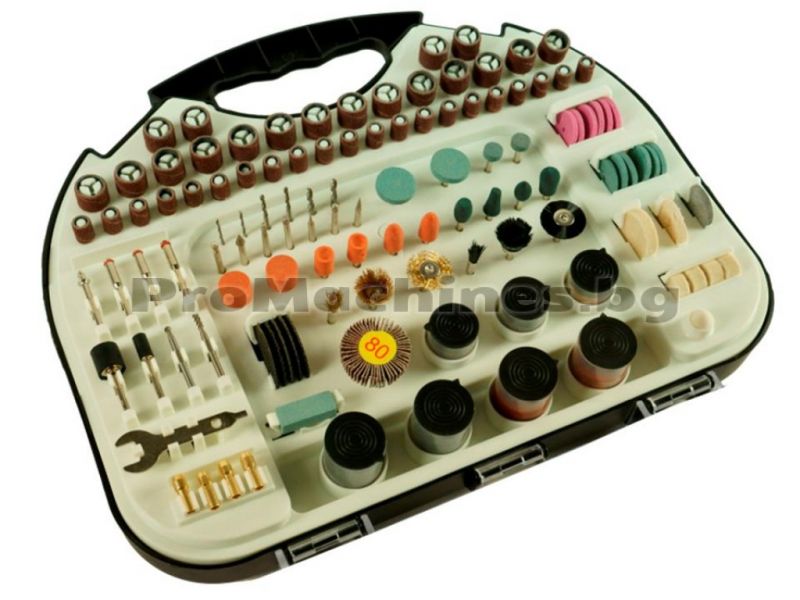 Raider представя комплект от 249 броя аксесоари за шлифовалка, предлагани в удобно и практично куфарче. Моделът е подходящ за гравиране, фрезоване, оформяне и полиране на дърво, метал, пластмаса и фибростъкло.